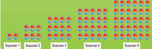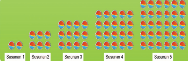 - Pola bilangan persegi panjang 2,6,12,20. Rumus urutan ke-n adalah n(n+1)