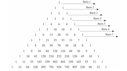 - Setiga pascal. Rumus jumlah bilangan baris ke-n adalah 2n-1